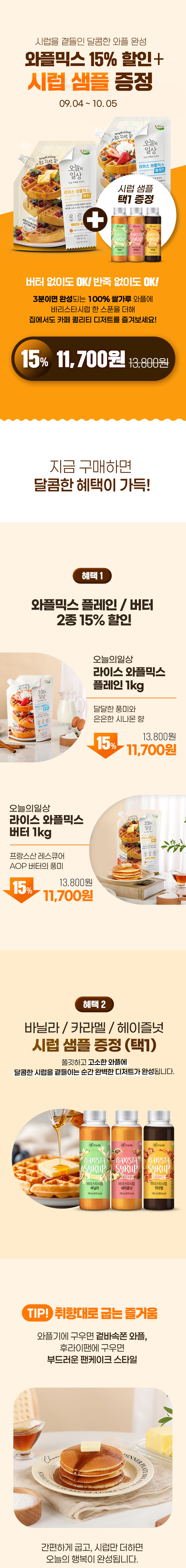 와플 15%할인 + 바리스타시럽 샘플 증정 |