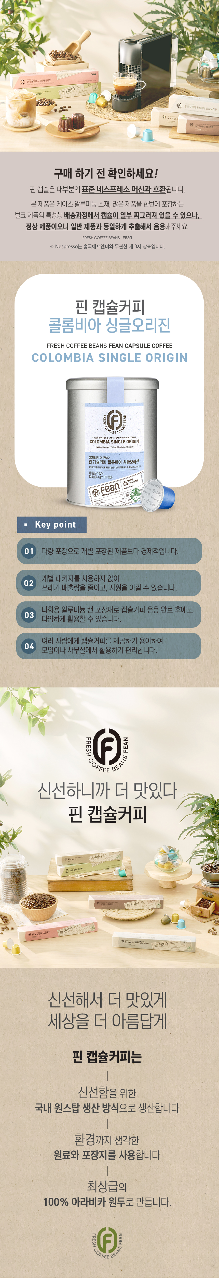 > 핀 캡슐커피 콜롬비아 싱글오리진(100입)