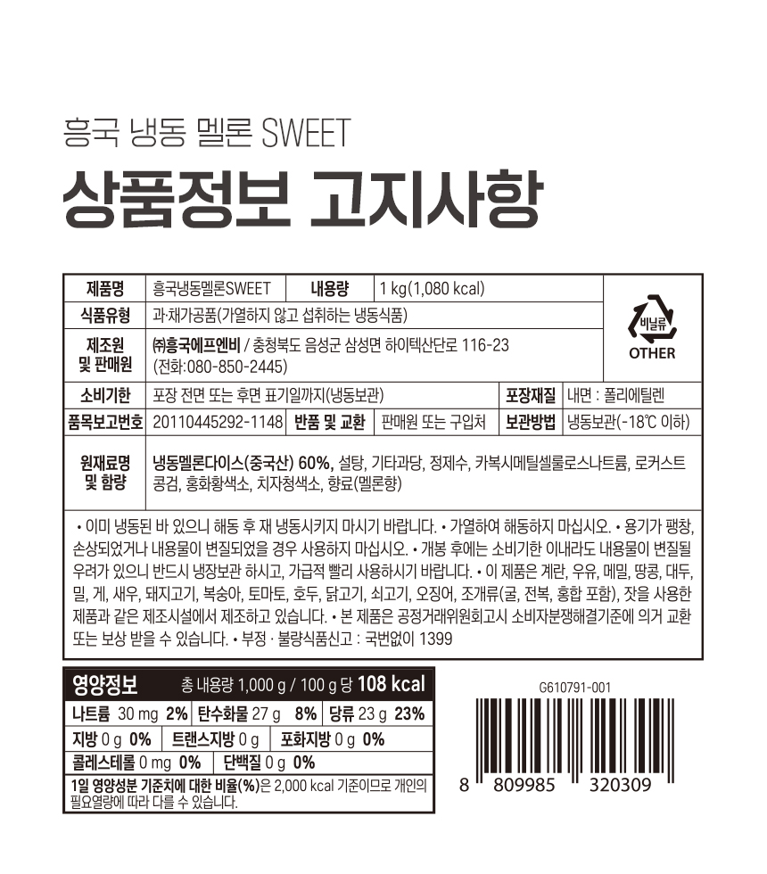 > 흥국 냉동멜론 SWEET